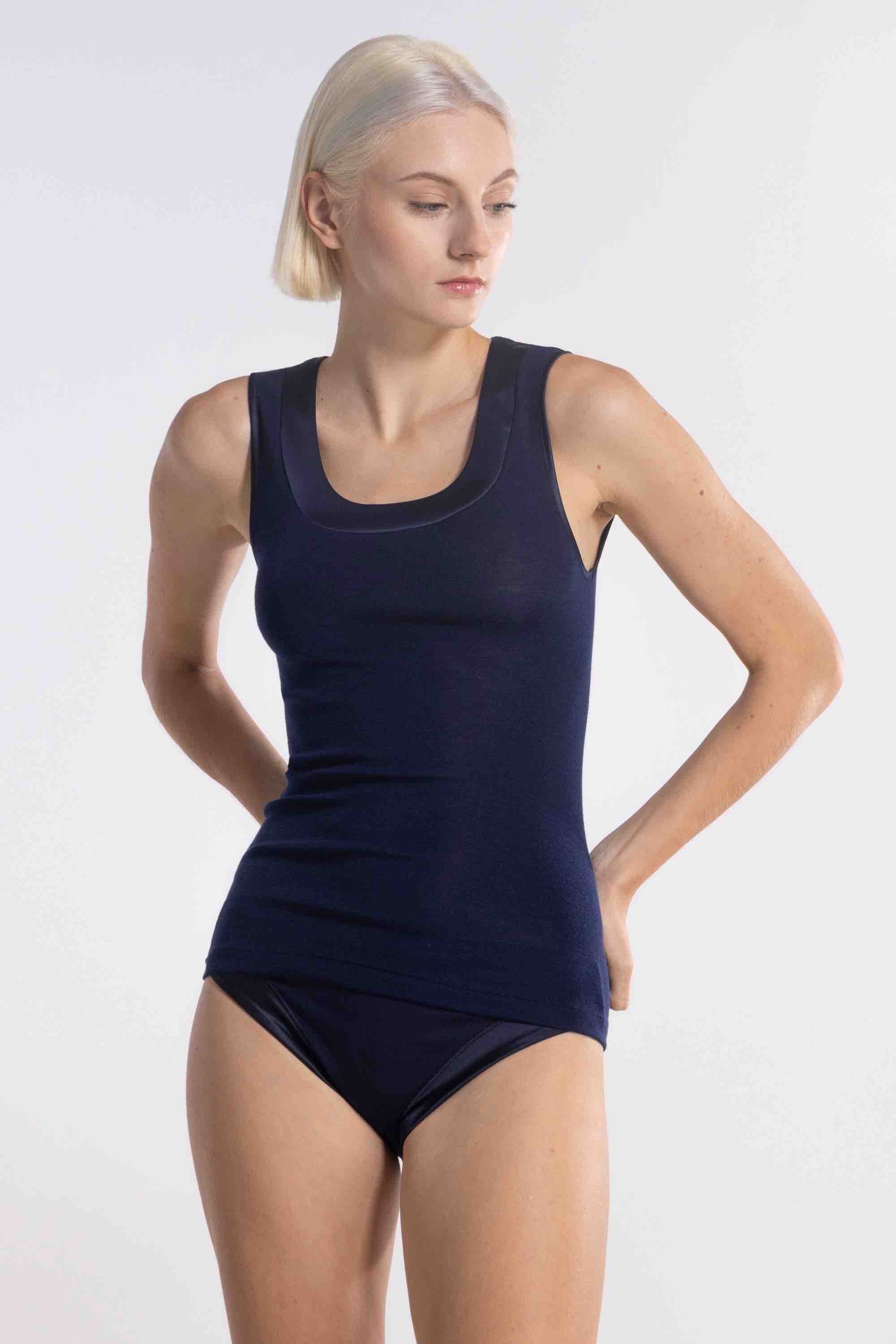 Oscalito Elegance Satin V-neck Wool/Silk Tank